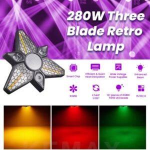 La Cabeza Móvil Retro Vintage 280W LED combina diseño clásico y tecnología de iluminación profesional para crear efectos visuales únicos en discotecas, escenarios, eventos y shows de DJ