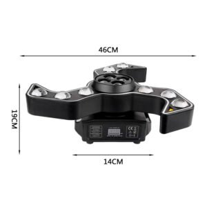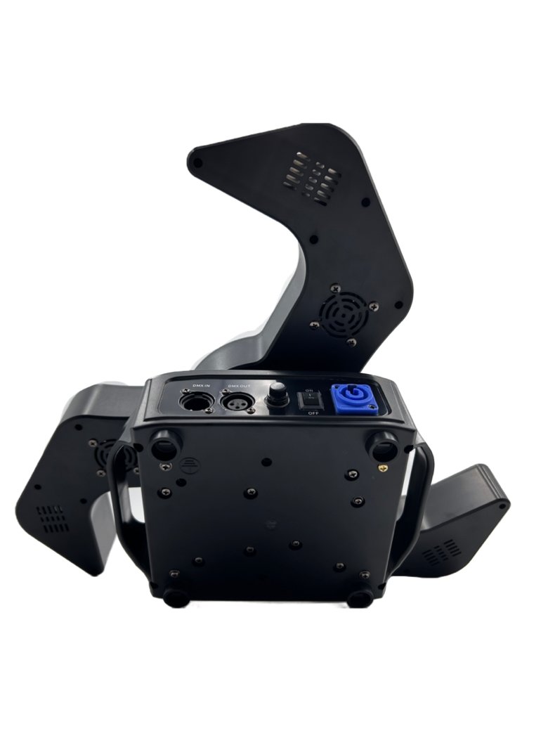 La Cabeza Móvil Triple Boomerang es un potente efecto de iluminación diseñado para discotecas, escenarios, DJs, eventos y espectáculos que buscan un impacto visual único. Su diseño dinámico tipo boomerang combina haz beam RGB, efecto bee-eye central y estrobos integrados, creando movimientos y efectos de luz espectaculares.