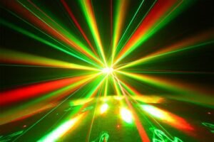 Este foco de fiesta incorpora 6 LEDs RGBW 4 en 1 de 10W con efecto ojo de abeja, generando haces coloridos y dinámicos que llenan el espacio de energía. Además, integra láser rojo (650 nm) y verde (532 nm), junto con efecto de luz estrellada verde, creando ambientes envolventes ideales para discotecas, bares y celebraciones.