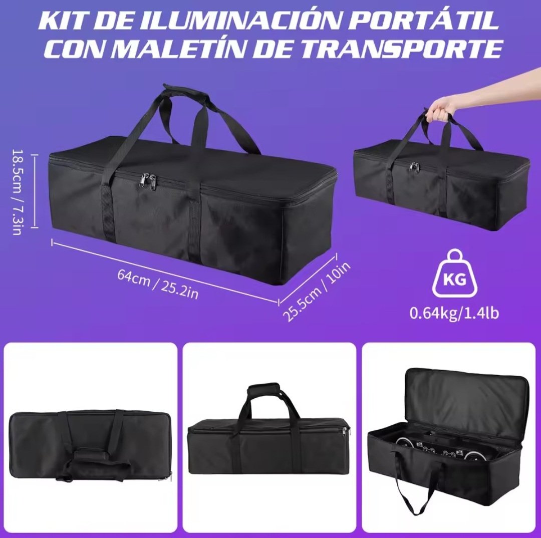 - Trípode ajustable en altura hasta 154cm