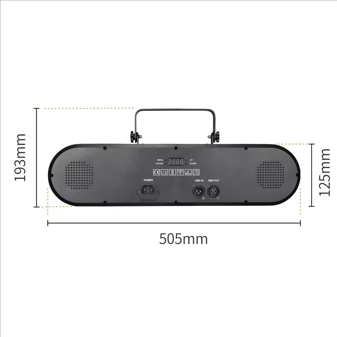 80W nominales (65W reales) con combinación LED RGBW + UV + láser de alta visibilidad. Cobertura ideal para espacios de 3 a 5 metros, ofreciendo un efecto profesional sin necesidad de varios equipos.