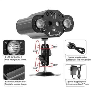 📦 Incluye: Mini láser de fiesta, soporte ajustable, cable de alimentación y manual de usuario.